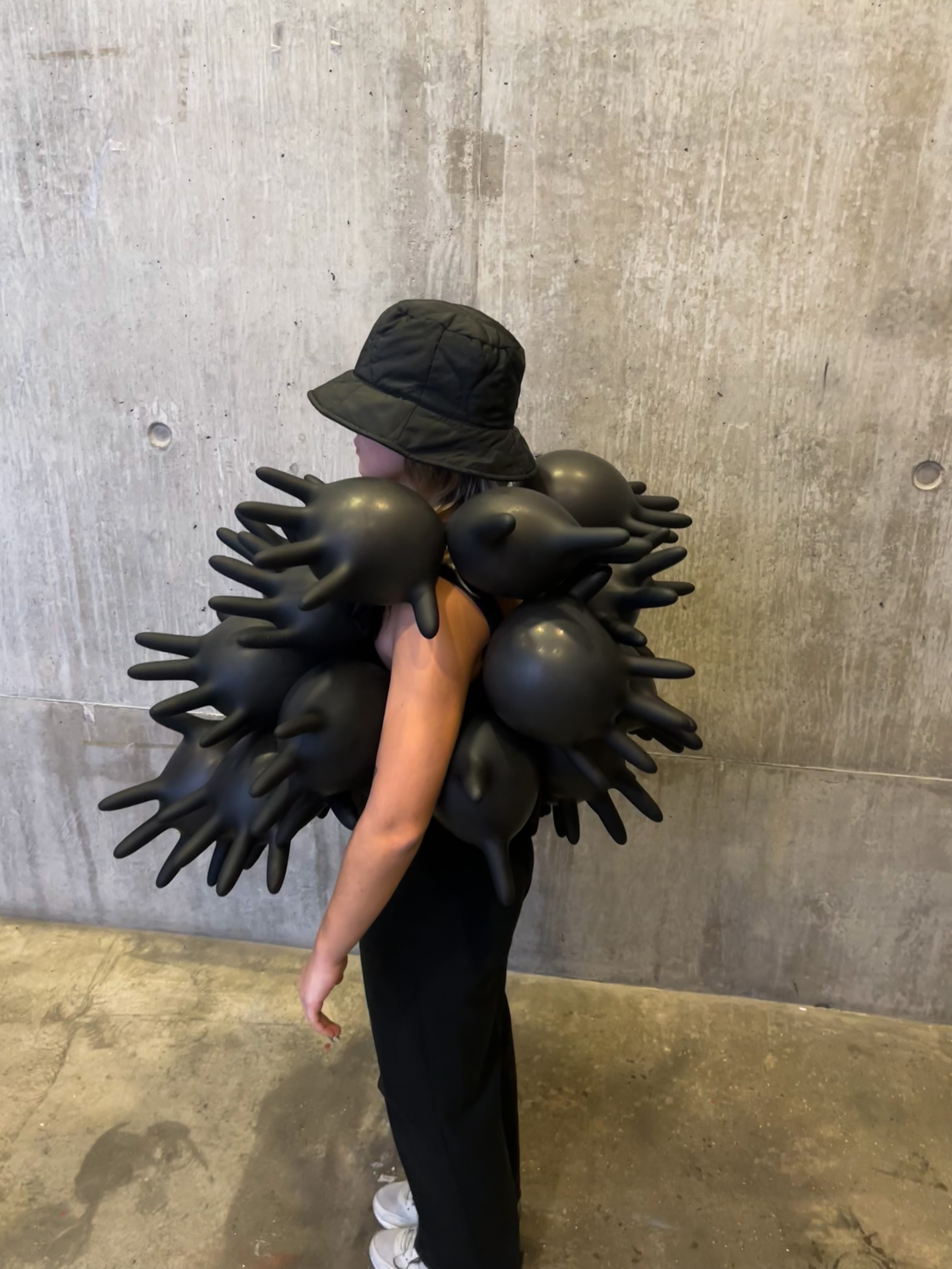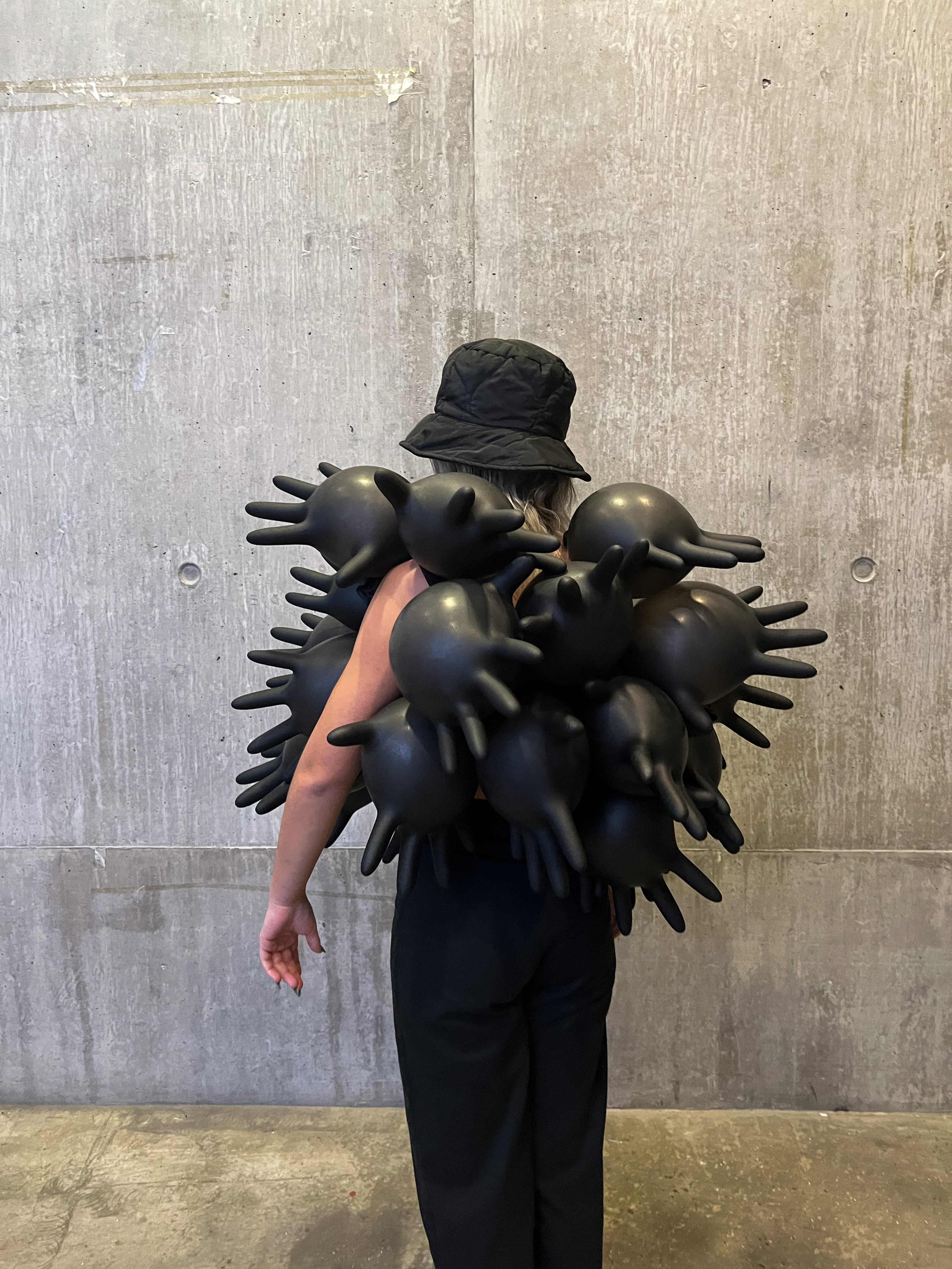 Textile created with recycled melted gloves.